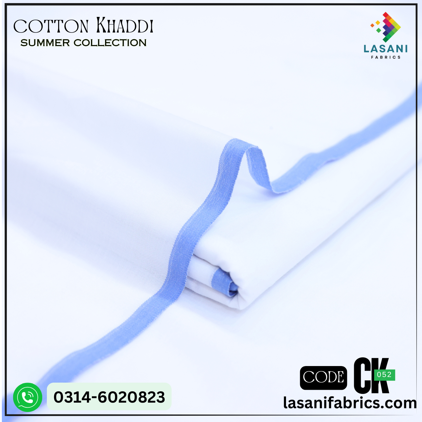Experience the perfect blend of elegance and tradition with our Simple Cotton Khaddar Summer collection by Lasani Fabrics. Woven using extra-fine twisted cotton yarn, this fabric is a lightweight yet durable choice — ideal for the hot summer months.