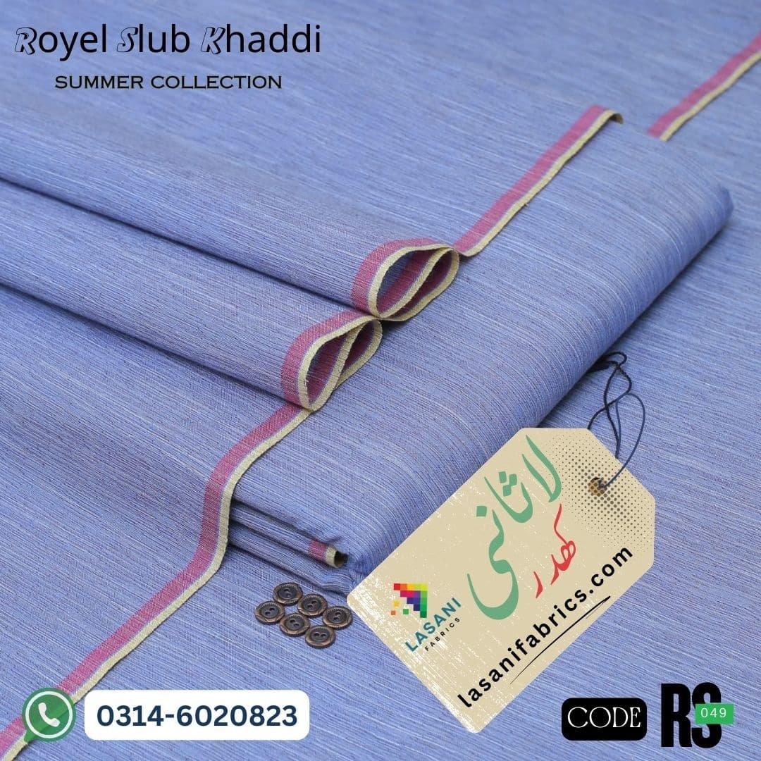 Experience the perfect blend of elegance and tradition with our Royel Slub Khaddar Summer collection by Lasani Fabrics. Woven using extra-fine twisted cotton yarn, this fabric is a lightweight yet durable choice — ideal for the hot summer months.