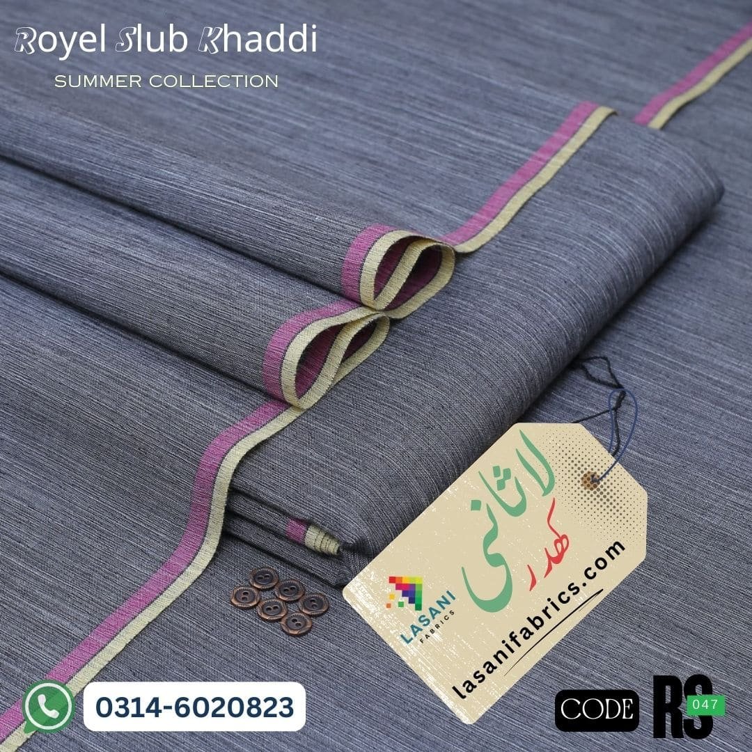 Experience the perfect blend of elegance and tradition with our Royel Slub Khaddar Summer collection by Lasani Fabrics. Woven using extra-fine twisted cotton yarn, this fabric is a lightweight yet durable choice — ideal for the hot summer months.